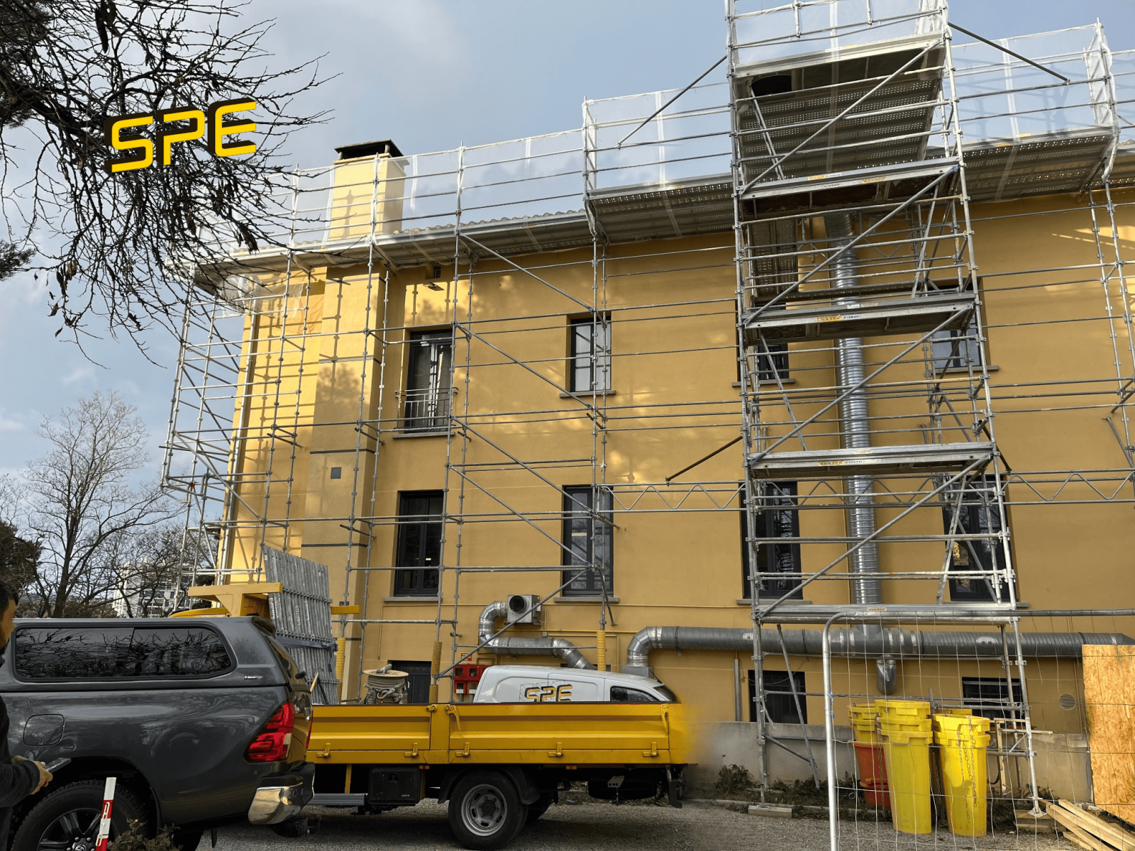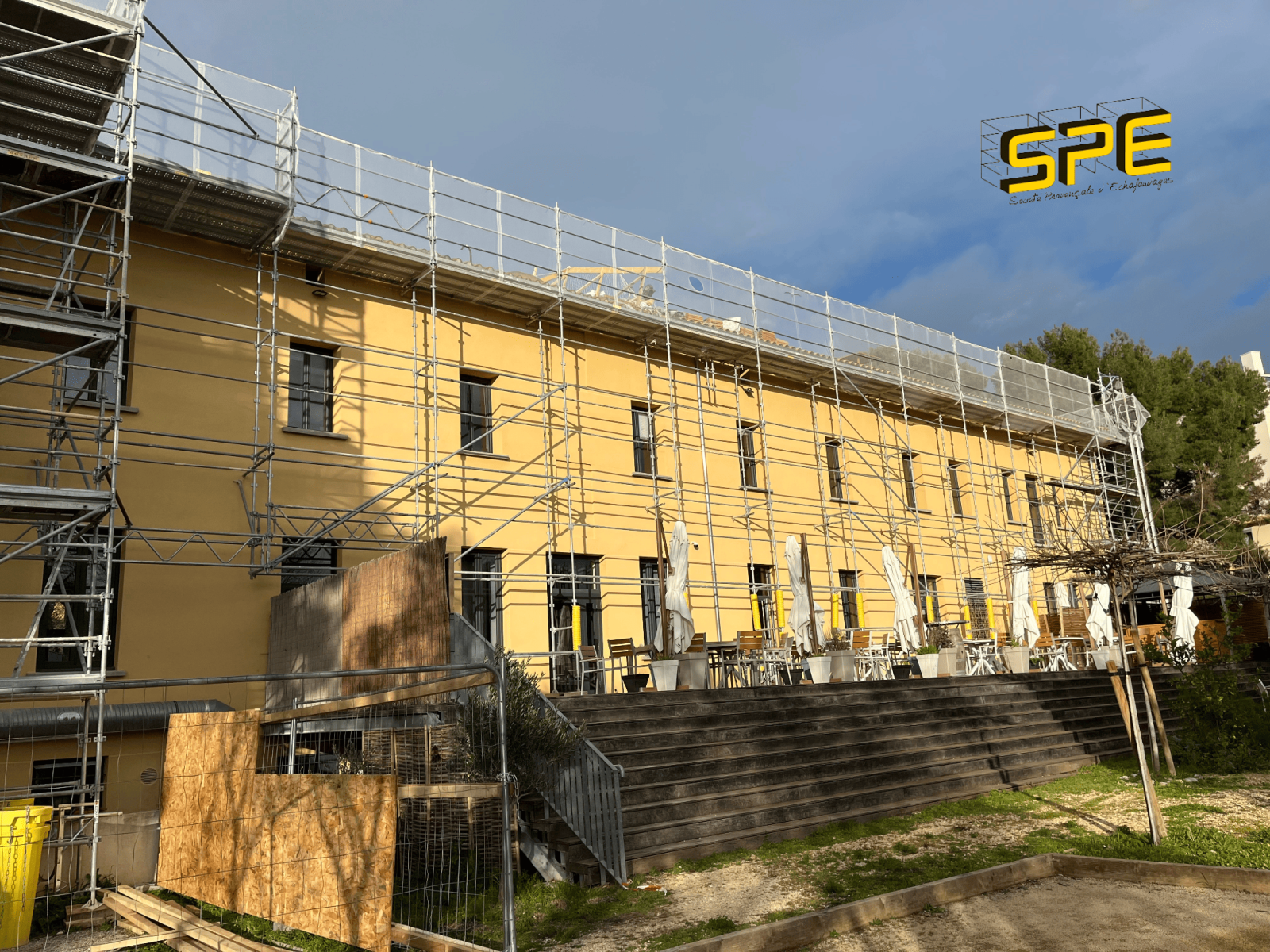 La Société Provençale d’Échafaudages, basée à Vitrolles dans les Bouches-du-Rhône, a mobilisé son bureau d’étude intégré pour valider l’implantation, les descentes de charges et le phasage.